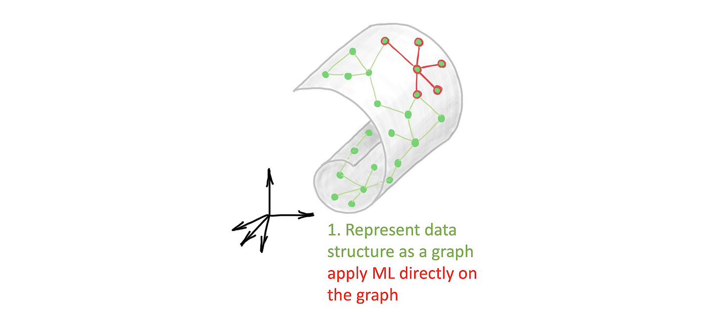 Graph deep learning offers a modern take on this process, by replacing this three-stage process outlined above with a single graph neural network. In dynamic graph CNNs or DGM, for instance, the construction of the graph and the learning are part of the same architecture: