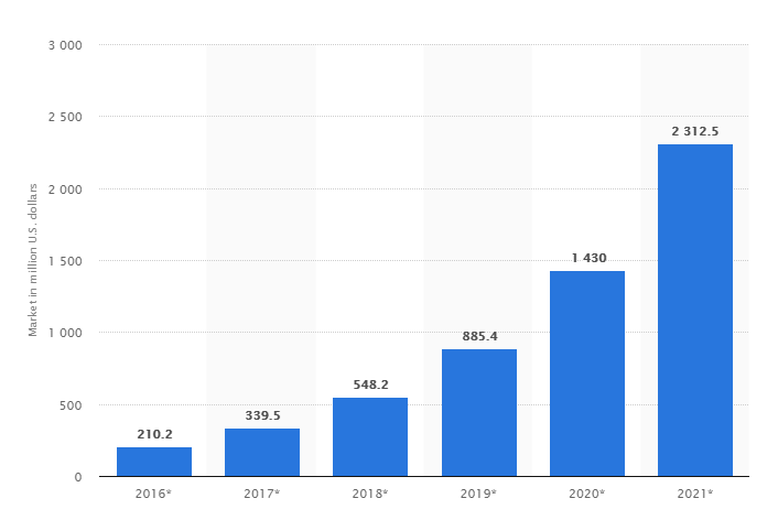 According to a report by Statista, global blockchain technology worldwide is predicted to increase dramatically from the year 2016 to 2021. Undoubtedly, it has become a hot topic in the tech world from the past few years. Here is the statical representation of the same report: