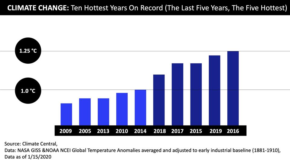 Climate change. The first earth day was in 1970. Thirty-two years ago this June Dr. James Hansen, then director of NASA’s Institute for Space Studies testified before the Senate proclaiming, “the greenhouse effect has been detected, and it is changing our climate now.” The five hottest years on record were the past five years and ten of the hottest years on record occurred over the past fifteen years. We have experienced unprecedented wildfires, superstorms, floods, and droughts, yet we have not changed our behaviors. We have simply failed to react with appropriate speed and may not be able adapt quickly enough to significantly forestall an environmental catastrophe. The global pause created by this global pandemic affords us an opportunity to rethink how we restart the economy as in the absence of our usual human activity.