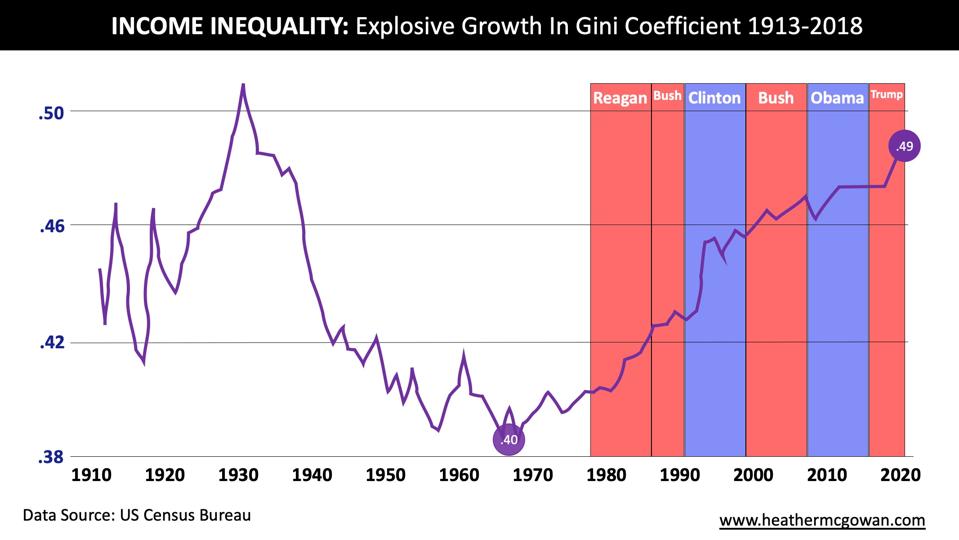 Income inequality. Following the market crash of the 1920s, the U.S. had a much more equitable distribution of value created than it does today. In the shadow of the great depression we built the middle class but since the 1970s, the Gini Coefficient – a statistical measure of income distribution across a population – has shifted dramatically toward the rich. A Gini Coefficient of 0 means absolute equality and a coefficient of 1 means absolutely inequality. In a capitalist society, income will always be unequal as we favorably reward our entrepreneurial risk takers and investors. Now, however, we have a Gini Coefficient of .49 (2018) which rivals the 1920s before the depression. We simply need a strong middle class with greater income distribution to keep our economy strong and to fairly distribute created value. Harvard Economist Raj Chetty’s research shows the decline of the American Dream, notably “Most Americans born in 1940 ended up better off, in real terms, then their parents at the same age. Only half of those born in 1980 have surpassed their parent’s family income.” When the richest 1% hold more wealth than the bottom 90% combined, there could be no clearer sign that we are failing to address this inequality. As we consider all the necessary rescue packages to the hardest hit industries and extending a more robust temporary safety net to all workers, we also have the opportunity to rethink how we restart the economy. We could be investing in a robust retraining effort now so when we restart the various idle parts of our economy, we have more folks ready to participate in the 4th industrial revolution (merging of cyber, biological, and physical systems) rather than the second (manufacturing) or third (computerization). Income inequality is not a measure of fairness in my view, but rather, a loss of human potential, which hits us all. Recent research found that if you were born in the top 1% you are 10x more likely to invent and patent that invention, generally leading to value creation. This disparity is not merely a measure of fairness, but rather, of lost potential. Those “lost Einsteins” diminish our collective potential.