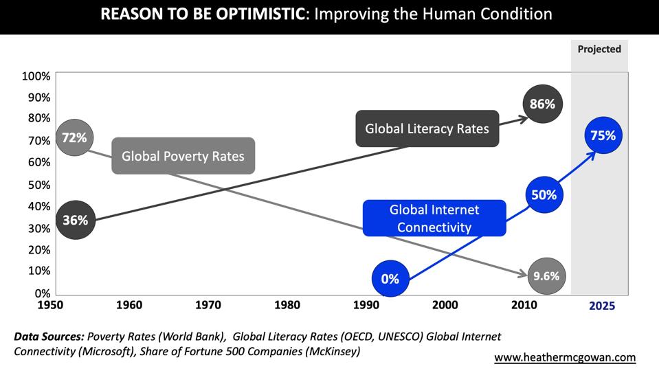 I will leave you with this optimistic note. In my lifetime, we have made our greatest strides in improving the human condition in all of our documented history. We have lifted more people out of extreme poverty, massively expanded literacy, and in the short period of time we have had the Internet, we have connected more than half the globe. It is with this view I remain optimistic (and very thankful we have global connectivity right now).